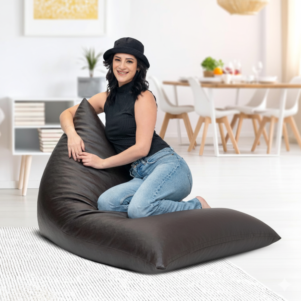 Kingwell Premium Brown & Tan Faux Leather Triangle Bean Bag Cover, Fits 6’3″ Height & 120kg Capacity