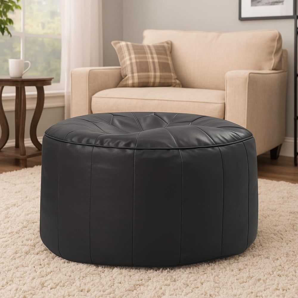 Kingwell Moroccan Footrest/Pouffe/Ottoman, Black Faux Leather, Handmade Bean Bag Cover, Without Beans.