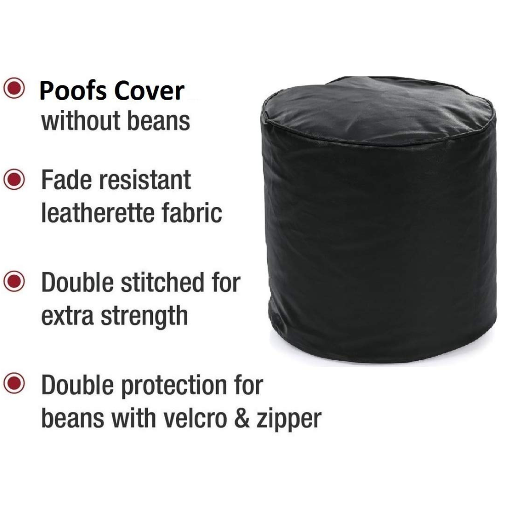 Kingwell Cube Footrest Bean Bag, 38x38 cm, Faux Leather, Without Beans, Black, Durable & Comfortable.